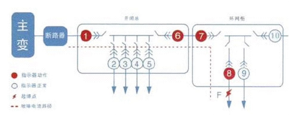 當(dāng)線路發(fā)生短路或接地故障后,故障電流流經(jīng)線路上安裝的故障指示器均翻牌或閃光指示,而非故障線路,非故障分支和故障點(diǎn)后的故障指示器不動作。運(yùn)行人員從變電站出發(fā),沿著故障線路查看故障指示器動作情況,確定故障范圍在最后一只動作的故障指示器和后段第一只未動作的故障指示器構(gòu)成的區(qū)間,從而迅速確定故障區(qū)段,分支及故障點(diǎn)。帶通信功能的遠(yuǎn)傳型故障指示器,不再需要去現(xiàn)場巡線查找故障,故障指示器與通信終端.后臺軟件配合,在3-5分鐘在監(jiān)控主站或者手機(jī)上即可收到故障信息,確定故障區(qū)段。