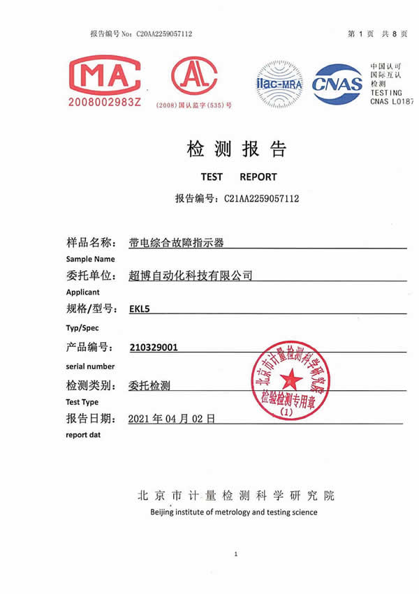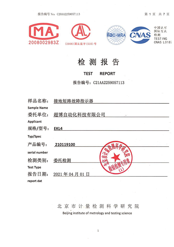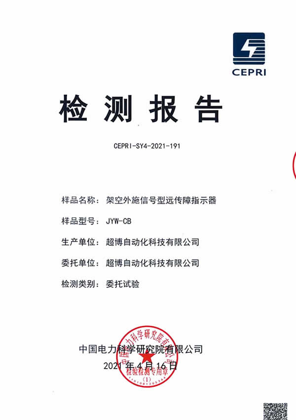 架空外施信號(hào)型遠(yuǎn)傳故障指示器檢驗(yàn)報(bào)告