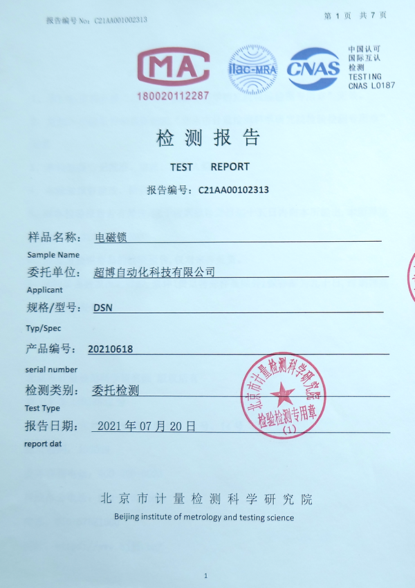 電磁鎖檢測(cè)報(bào)告