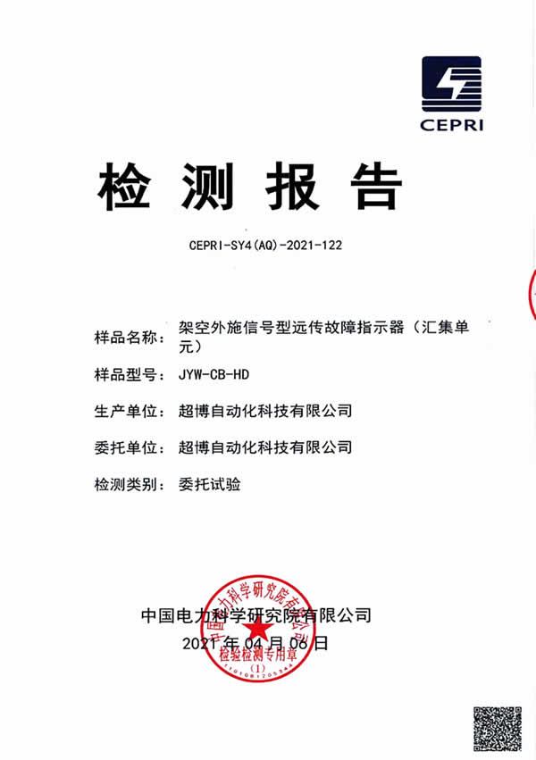 架空外施信號(hào)型遠(yuǎn)傳故障指示器(匯集單元)檢測(cè)報(bào)告