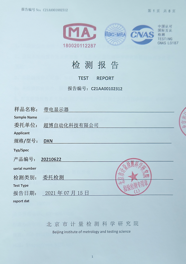 帶電顯示器DXN檢測(cè)報(bào)告