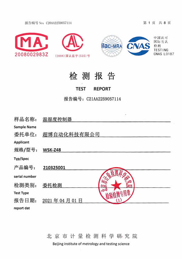 溫濕度控制器檢測(cè)報(bào)告